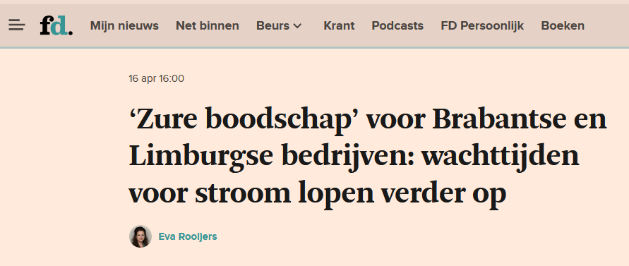 FD wijdt twee artikelen aan de oplopende netcongestie in de zuidelijke provincies. Redox Storage Solutions heeft hiervoor de oplossing in huis.